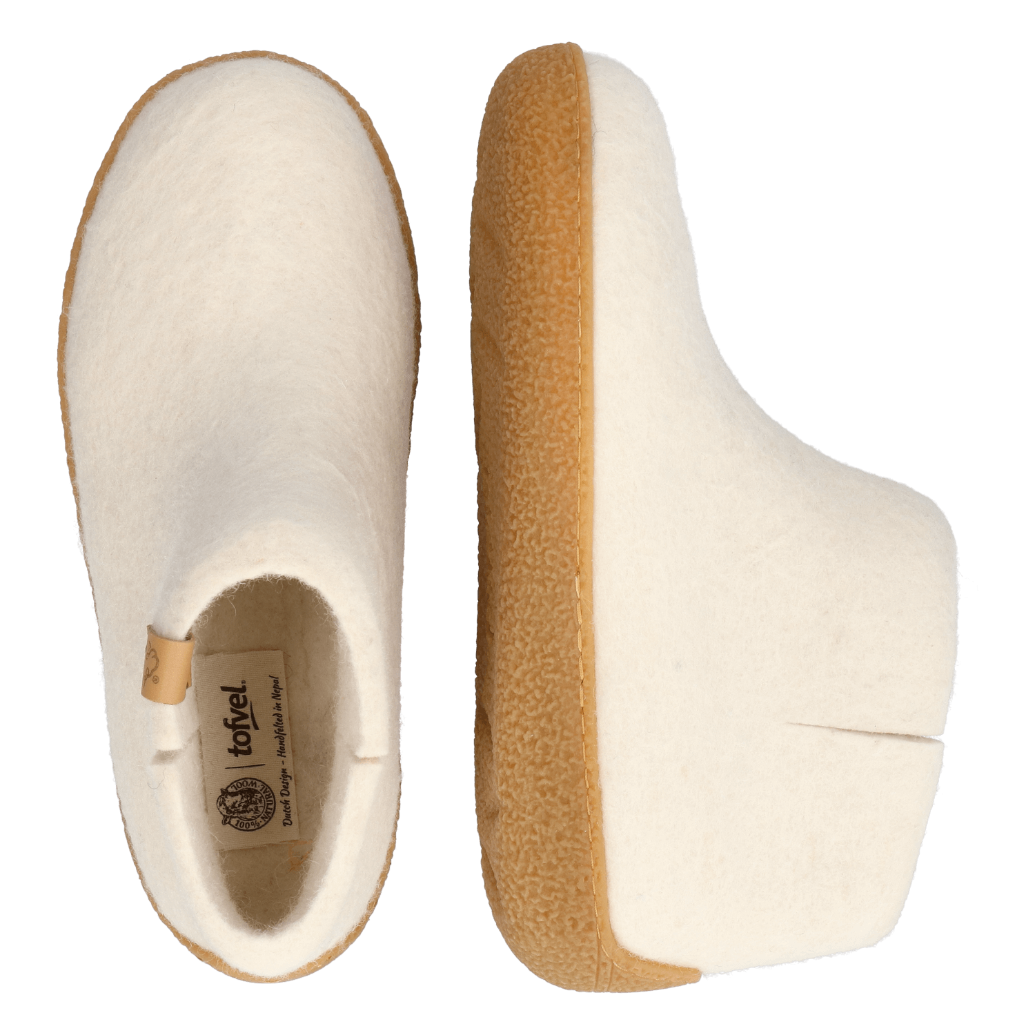 Jeder Tofvel wird in Nepal auf sozial verantwortliche und authentische Weise von Hand gefertigt. Das Obermaterial besteht vollständig aus 100 % natürlichem Wollfilz und verfügt über eine integrierte Sohle für zusätzlichen Komfort. Diese Rabara Maha hat eine honigfarbene Gummilaufsohle. Die strapazierfähige Sohle macht die Hausschuhe auch für den Außenbereich geeignet. Sie sind ideal für den Innen- und Außenbereich – rund ums Haus, auf dem Campingplatz oder in einer Berghütte – wenn du den Komfort von Pantoffeln suchst, um deine Füße warm zu halten. Dank des natürlichen Wollfilzes aus Schafwolle haben die Hausschuhe mehrere besondere Eigenschaften. Sie sind atmungsaktiv, halten deine Füße im Winter angenehm warm, im Sommer kühl und verhindern unangenehme Gerüche.