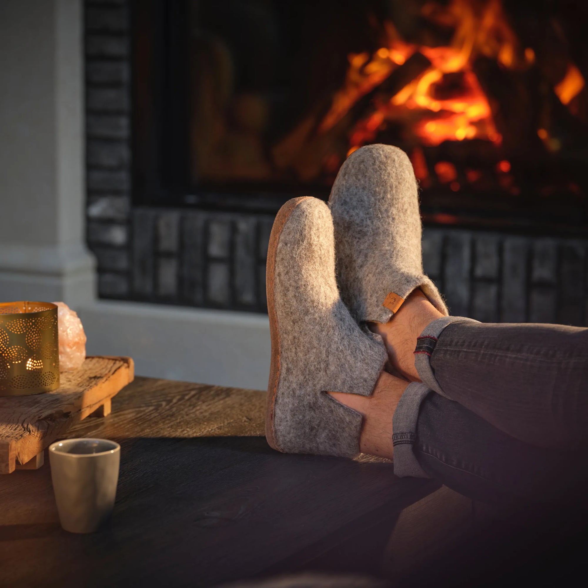 Tofvel werden in Nepal auf authentische Weise in echter Handarbeit hergestellt. Dieser originelle Tofvel, der Mula, besteht aus 100 % Wollfilz mit einer integrierten stoßdämpfenden Sohle. Die Laufsohle des Mula ist aus Kalbsleder gefertigt. Die weiche Sohle ist nur für den Einsatz im Haus geeignet, bietet aber guten Halt auf rutschigen Böden. Die Pantoffel sind angenehm zu tragen und haben dank der verwendeten Materialien eine Reihe von guten Eigenschaften. Der Wollfilz ist atmungsaktiv und hält die Füße wohlig temperiert. Kurzum, wunderbar warme Füße an kalten Tagen und ein kühlender Effekt an wärmeren Tagen. Die Pantoffel sind in verschiedenen Farben erhältlich, sodass jedes Familienmitglied seine eigene Farbe wählen kann.